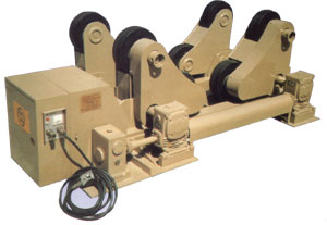 说明:自动调校滚轮架5-300T可选择 产品特点: 1、自动调校适应不同筒体直径 2、主动架上所有滚轮都起驱动作用 3、直流可控硅调速,速度稳定可靠 4、能与立柱操作架连动并备有单独使用装置