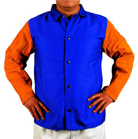 特点: 雄蜂王(Yellowjacket) 焊服创新焊护概念, 提供上身清爽舒适又全臂抗烧焊飞溅物!袖由抗火、隔热及耐磨的牛二层皮制成。